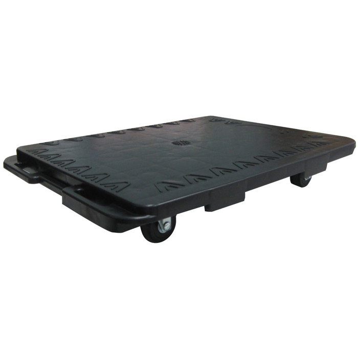Flyttevogn eller transporthund. Mål: 48,5 x 38 cm. Fremstillet i holdbart polypropylen. Udstyret med 7,6 cm robuste gummihjul. Kan kobles sammen for at skabe en større "flyttehund". Har 4 drejbare hjul. Højde: 8,7 cm. Mulighed for at hægte 2 eller 4 enheder sammen til en stor møbelhund.