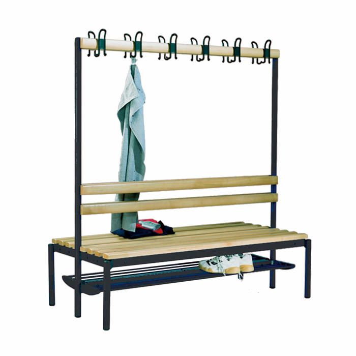 Bænken kommer som standard med sæder lavet af hårdt træ, der er afrundet på toppen for at give øget siddekomfort. Alle ben er udstyret med justerbare stilleskruer, hvilket sikrer, at bænken står stabilt på alle typer underlag.