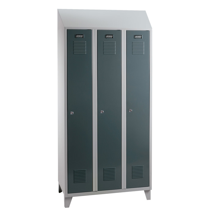 omklædningsskab med 3 rum og skråt tag