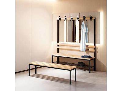 Omklædningsbænke og knagerækker er også essentielle i ethvert omklædningsrum. Bænke giver brugerne et sted at sidde, når de klæder om, mens knagerækker gør det nemt at hænge overtøj eller tasker op. Bænkene skal være robuste nok til at klare mange års brug, og er ofte fremstillet af materialer som træ, metal eller plast. Knagerækker er lige så vigtige for at holde rummet organiseret, og de findes i mange forskellige designs, fra enkle vægmonterede kroge til større, fritstående løsninger. I vores sortiment kan du både købe bænke og knagerækker hver for sig, eller som en samlet løsning. Vi har også garderobeskabe inkl. bænke.