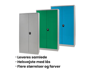 Vi er altid lagerførende på vores mest populære skabe eller reoler til kontoret. Det betyder, at vi i langt de fleste tilfælde kan levere dine nye kontormøbler inden for 1-5 hverdage i hele Danmark. Du kan også vælge selv at afhente fra vores lager i Slagelse.