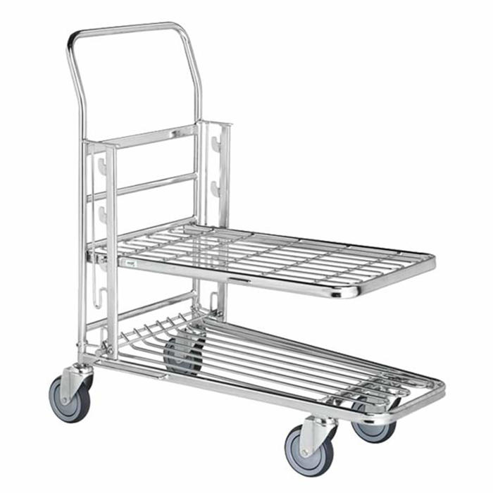 Elforzinket plukkevogn, der er designet til at være stabelbar, så flere vogne kan køres ind i hinanden for nem opbevaring. Hylden kan justeres og stilles lodret efter behov. Vognen er udstyret med fire svingbare hjul, hvilket gør den let at manøvrere. Den maksimale belastning er 300 kg. Leveres usamlet.