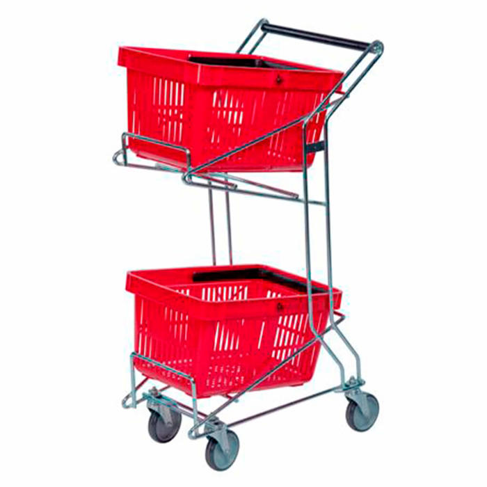 Denne kundekurvsvogn er ikke kun praktisk, men også robust og holdbar. De svingbare hjul gør det nemt at navigere, selv i smalle gange. Den elforzinkede overflade beskytter mod rust og slid, hvilket forlænger vognens levetid. Med plads til to kurve kan kunderne nemt transportere deres varer rundt i butikken.