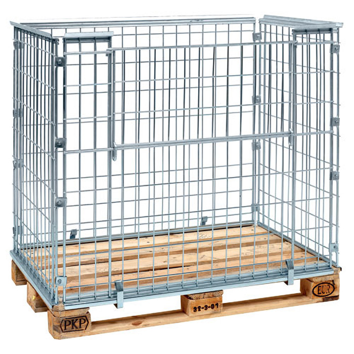 Dette robuste pallebur er designet til at passe perfekt til EUR-paller. Det leveres elforzinket, hvilket sikrer holdbarhed og lang levetid. Du kan nemt stable paller ovenpå burene, så du udnytter pladsen bedst muligt. Når buret ikke er i brug, kan det klappes sammen for at spare plads. Det er også kompatibelt med BlueSteel og Steel ladvogne og har en praktisk låge på langsiden.