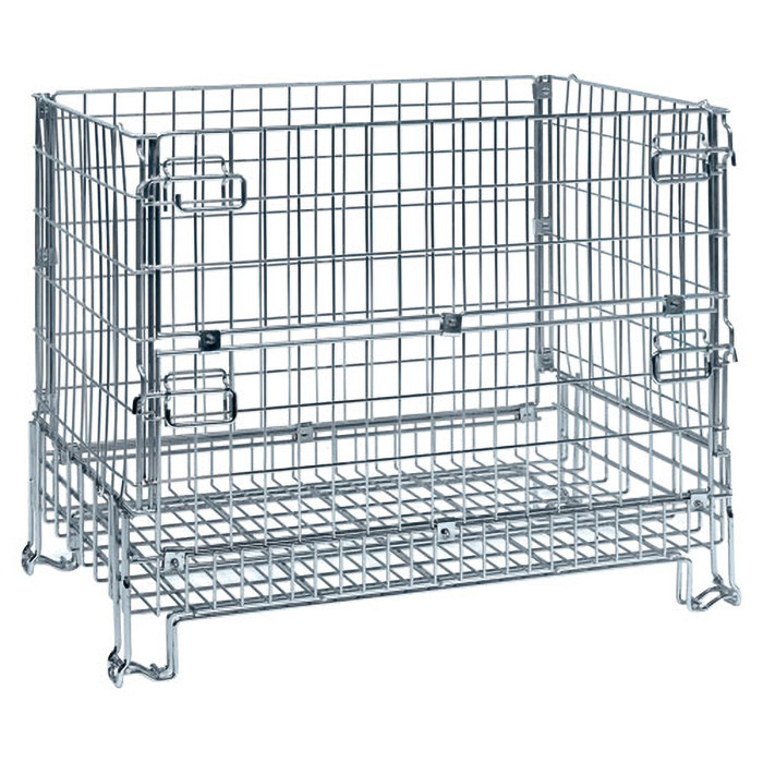 Dette sammenklappelige trådbur er lavet af elforzinket stål og er designet til at optimere pladsen. Når det ikke er i brug, kan det nemt klappes sammen, så det fylder mindst muligt. Buret har en låge på langsiden, hvilket gør det nemt at få adgang til indholdet.