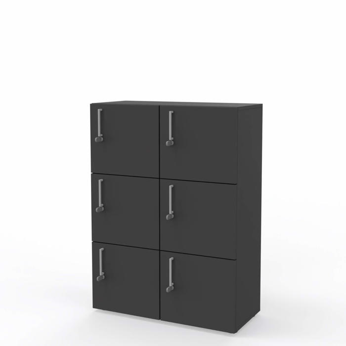 W6 er en praktisk personaleboks, der tilbyder 6 separate rum til opbevaring af personlige ejendele. Hvert rum er udstyret med en lås og har elegante aluminiumsgreb. Denne personaleboks leveres usamlet og kræver cirka en time at samle. Den er designet med justerbare fødder, hvilket sikrer, at skabet står stabilt på enhver overflade. Leveres samlet og klar til brug.