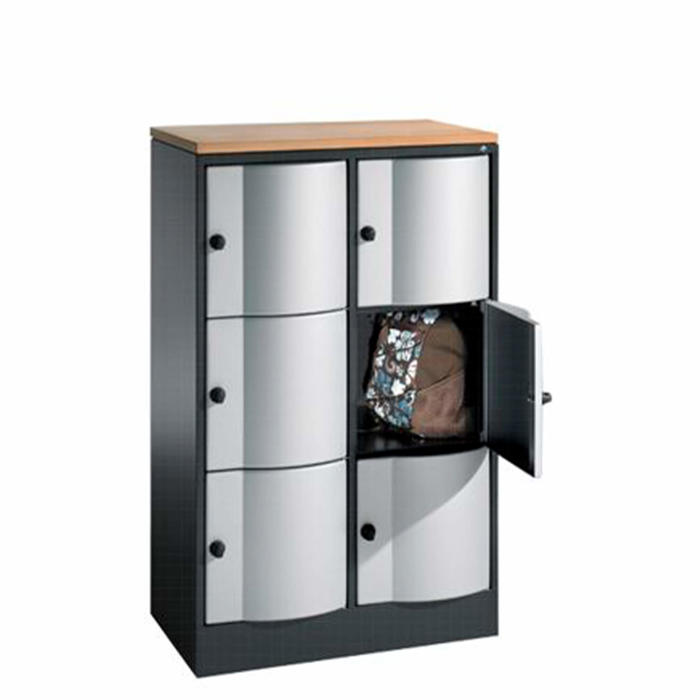 Resisto skabe er en praktisk løsning til mange forskellige steder, hvad enten det er til børn, skoler, universiteter, sportshaller, fitnesscentre, spa-faciliteter, indkøbscentre eller kontorer. Denne model har 2x3 rum og en topplade, der kan bruges som ekstra opbevaringsplads.