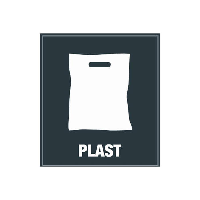 Klistermærkerne efterlader kun det hvide tryk, hvilket gør dem velegnede til montering på affaldsbeholdere i alle farver. Dette sikrer, at teksten 'PLAST' er tydelig og let at læse.
