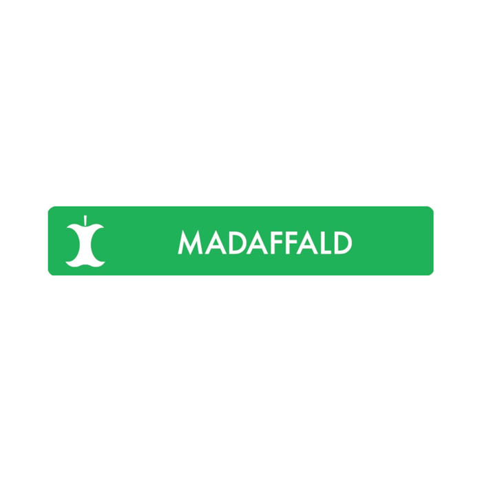 Pictogrammet har teksten 'MADAFFALD', hvilket gør det tydeligt, hvor madaffaldet skal placeres. Det er en enkel løsning til at forbedre affaldssorteringen i hjemmet eller på arbejdspladsen.
