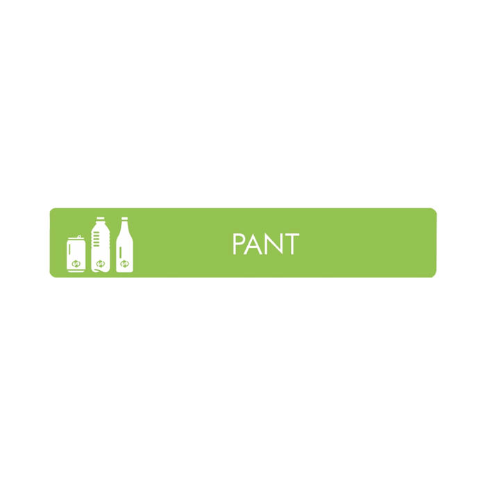 Pictogrammet har teksten 'PANT', hvilket gør det nemt at identificere, hvor pantflasker og -dåser skal placeres. Det er en enkel løsning til at forbedre affaldssorteringen i hjemmet eller på arbejdspladsen.