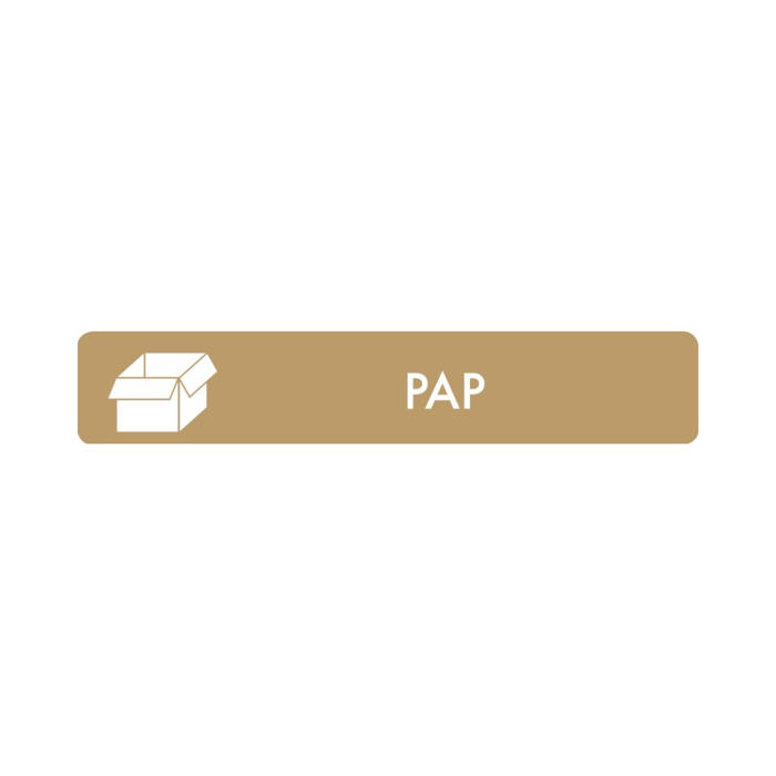 Pictogrammet har teksten 'PAP', hvilket gør det ideelt til at markere papirsortering. Det er en enkel og effektiv måde at organisere affaldshåndteringen på.