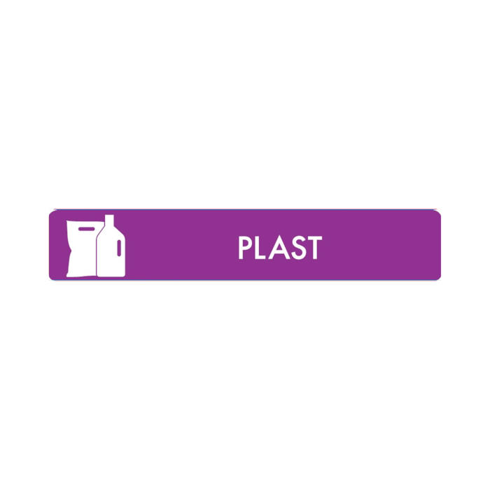 Pictogrammet har teksten 'PLAST', hvilket gør det ideelt til at markere beholdere til plastaffald. Det er en enkel måde at sikre korrekt affaldssortering på.