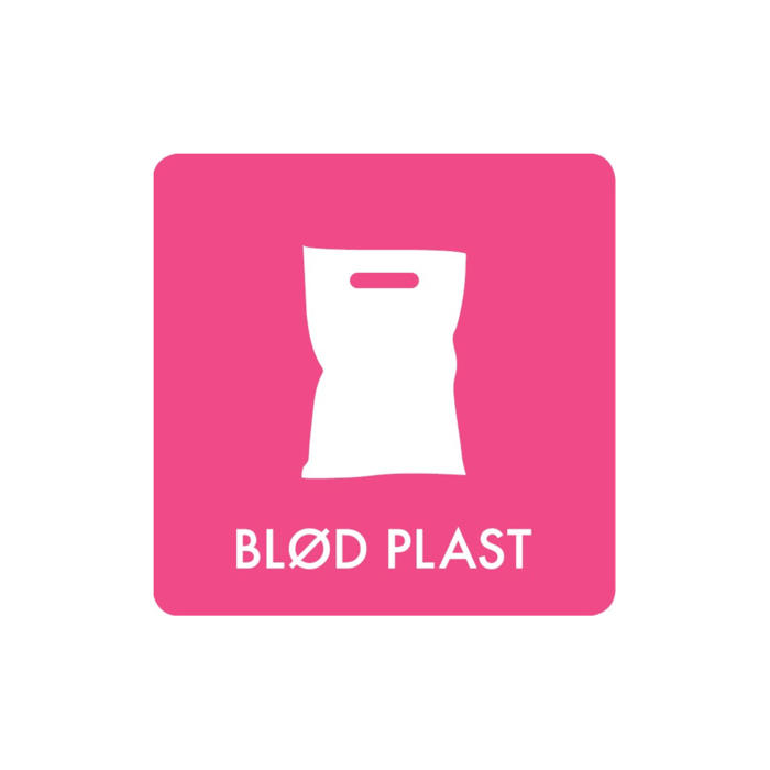 Pictogrammet har teksten 'BLØD PLAST', hvilket gør det tydeligt, hvad der skal sorteres her. Det er en praktisk løsning til at sikre korrekt affaldshåndtering i hjemmet eller på arbejdspladsen.