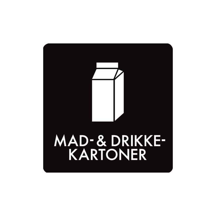 Pictogrammet har teksten 'MAD & DRIKKE KARTONER', hvilket gør det let at identificere, hvor disse typer affald skal placeres. Det er en praktisk løsning til at sikre korrekt sortering i hverdagen.