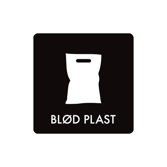 Pictogrammet har teksten 'BLØD PLAST', hvilket gør det tydeligt, hvad der skal sorteres her. Det er en praktisk løsning til at sikre korrekt affaldshåndtering i hjemmet eller på arbejdspladsen.