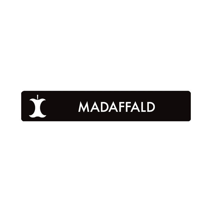 Pictogrammet har teksten 'MADAFFALD', hvilket gør det tydeligt, hvor madaffaldet skal placeres. Det er en enkel løsning til at forbedre affaldssorteringen i hjemmet eller på arbejdspladsen.