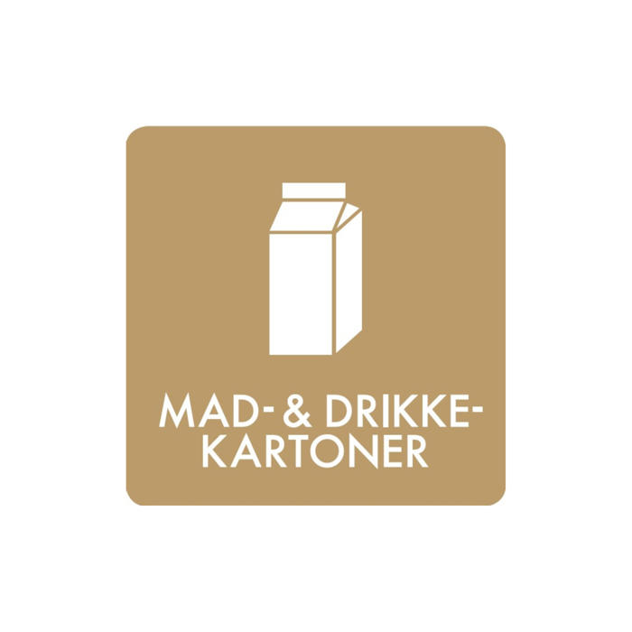 Med teksten 'MAD&DRIKKE-KARTONER' er dette pictogram ideelt til at hjælpe med at identificere den rette beholder til kartoner fra mad og drikke. Det er en enkel måde at sikre korrekt sortering og bidrage til en mere effektiv affaldshåndtering.