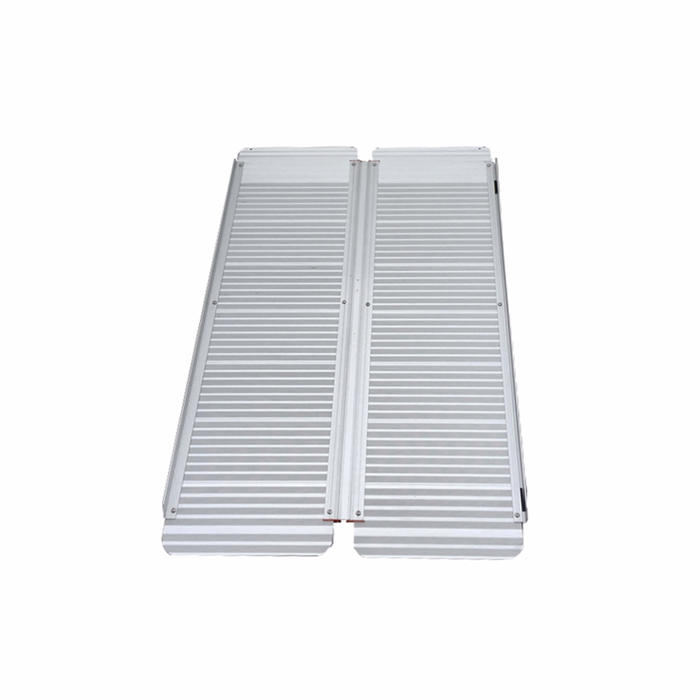 Denne foldbare rampe er praktisk og fylder mindre, når den ikke er i brug. Den har en riflet overflade, som gør den skridsikker, hvilket gør den ideel til vogne, kørestole og transportbure. Rampen kan bære op til 270 kg pr. par.