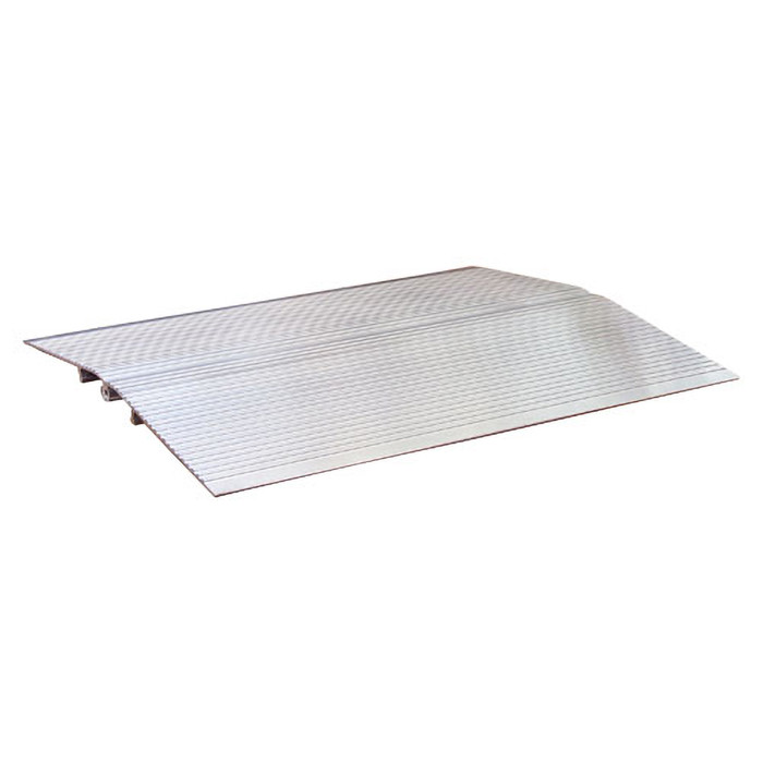 Vores brede tærskelrampe er designet til at kunne bruges ved flere forskellige højder, hvilket gør den utrolig praktisk i mange situationer. Den er opdelt i to dele, hvilket gør den let og nem at håndtere. Den rillet overflade sikrer, at rampen er sikker at bruge, selv under udfordrende forhold.