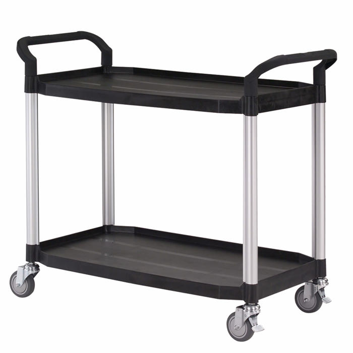 Dette rullebord er lavet af superplast og har to hylder. Det kan bære op til 250 kg og er udstyret med fire drejelige hjul, hvoraf to har bremser. Afstanden mellem hylderne er 55,5 cm, hvilket gør det praktisk til opbevaring. Rullebordet er let at rengøre og passer godt ind i de fleste kantiner.