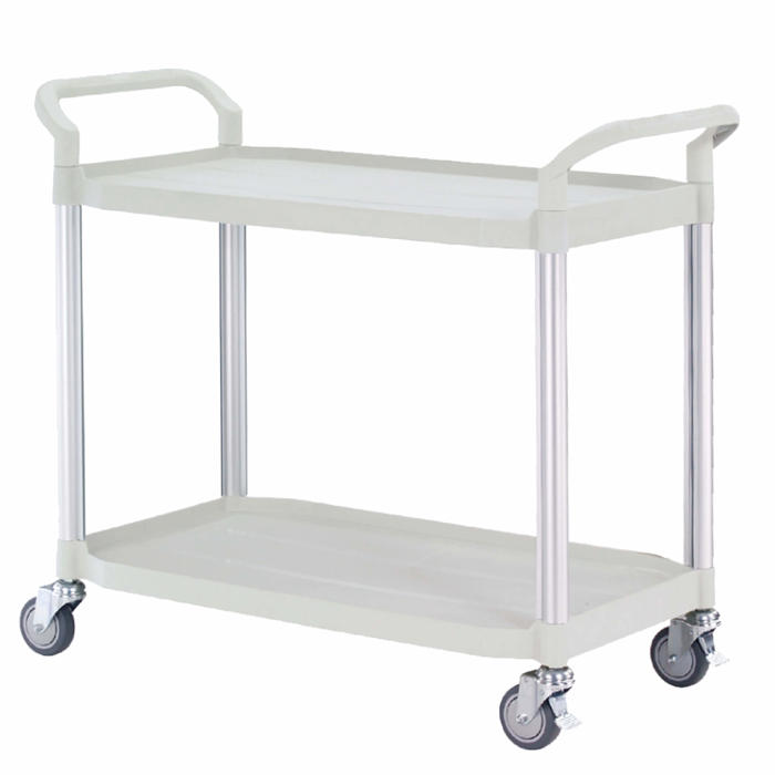 Dette rullebord i plast er designet med to hylder og søjler af aluminium, hvilket gør det både robust og let. Med en kapacitet på 250 kg kan det håndtere tunge belastninger uden problemer. Bordet er udstyret med fire drejelige hjul, hvoraf to har bremsefunktion, hvilket gør det nemt at manøvrere og sikre på plads. Afstanden mellem hylderne er 55,5 cm, og der er håndtag i begge ender for nem transport. Bordet leveres usamlet, men er nemt at samle.