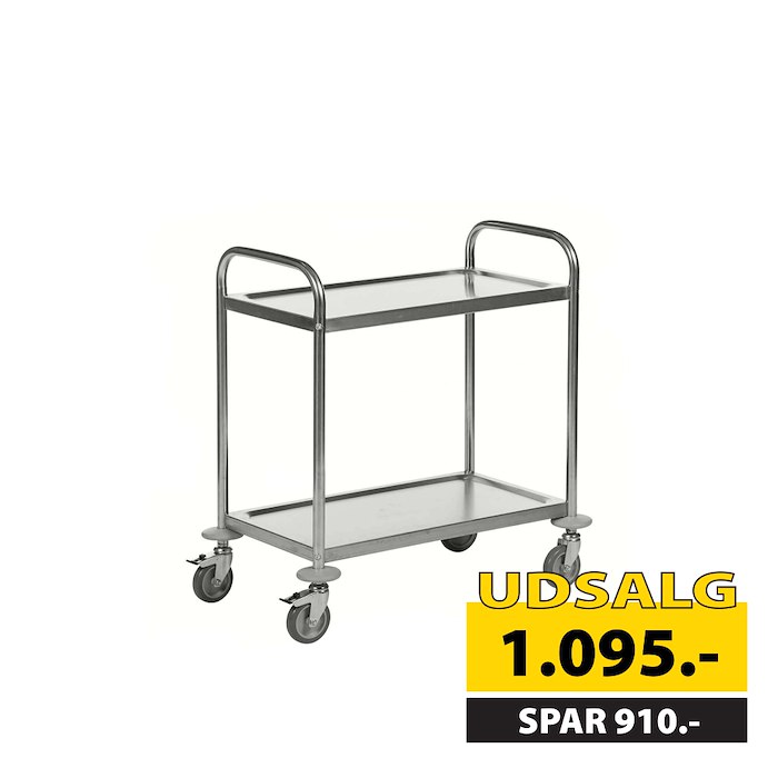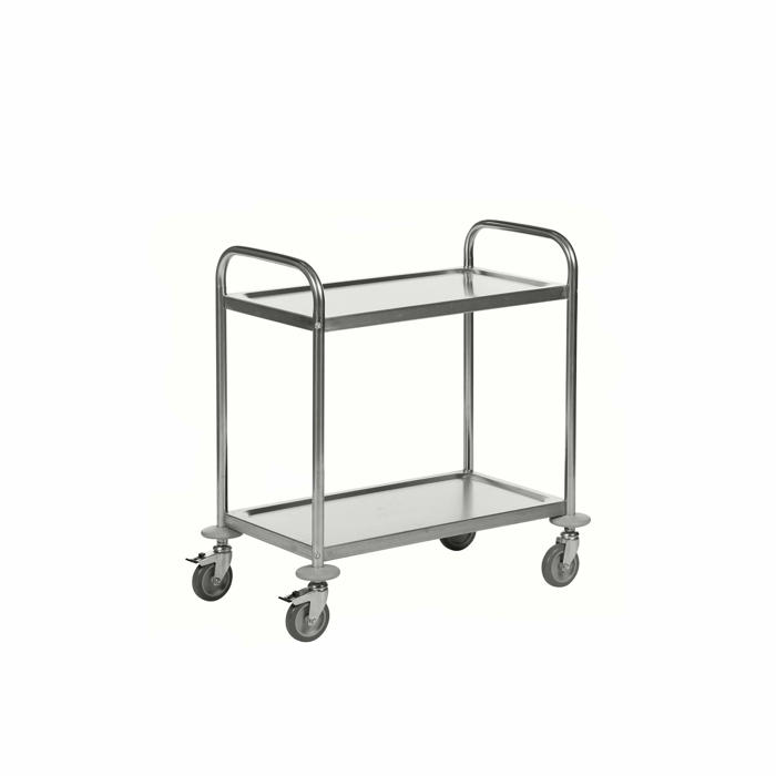 Dette rustfri rullebord er ideelt til transport af forskellige varer, herunder levnedsmidler. Bordet er udstyret med to hylder og fire svingbare hjul, hvoraf to kan låses for ekstra stabilitet.