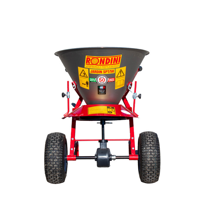 Denne model af saltspreder fra Rondini er ikke kun en saltspreder. Den kan også bruges til kunstgødning og såning af græsfrø. SPM 50 er forsynet med en lille omrører, som sikrer et jævnt flow på spredetallerkenen.