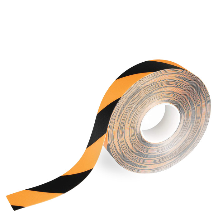 Selvklæbende markeringstape i to farver, der er permanent. Denne tape er ideel til at markere gang- og kørestier i lagerhaller og produktionsområder. Den er velegnet til hurtige og varige ændringer. Tapen har en skridsikker overflade, som hjælper med at forhindre fald- og snubleulykker. Den kan modstå trafik fra gaffeltrucks og løftevogne, men vil blive slidt, hvis der drejes, bremses eller laves rotationsbevægelser direkte på tapen.