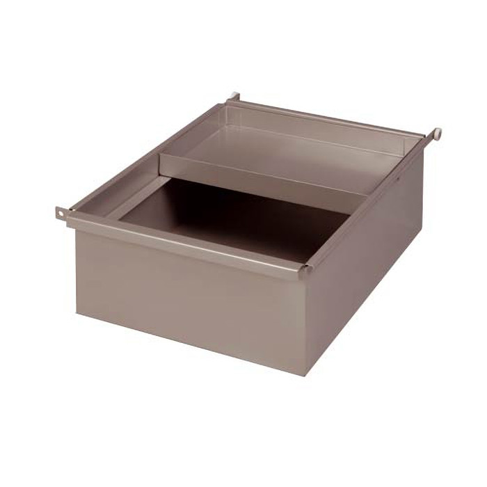 Denne holdbare metalskuffe er designet til montering under din mesterbænk eller filebænk. Den er fremstillet af kraftigt stål og monteres på skinner for en stabil og letløbende funktion. Skuffen er udstyret med en ekstra inderskuffe, der giver dig mulighed for at organisere dine værktøjer og materialer nemt og effektivt.