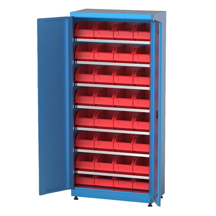 Hi-Max bakkeskabet er lavet af robust stål og har to døre. Det kommer med syv hylder, hvor skufferne er placeret. Skabet står på fire justerbare fødder.