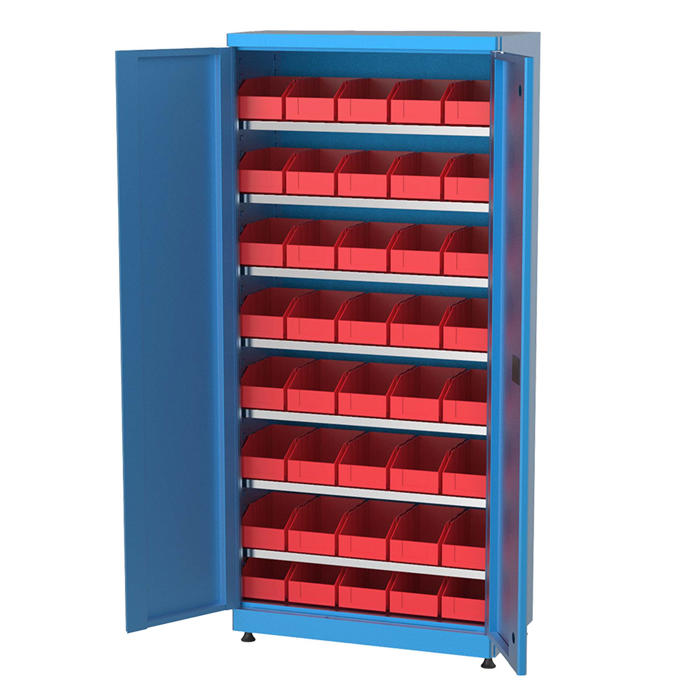 Hi-Max bakkeskabet er lavet af robust stål og har to døre. Det kommer med syv hylder, hvor skufferne er placeret. Skabet står på fire justerbare fødder, så du kan tilpasse det efter behov.