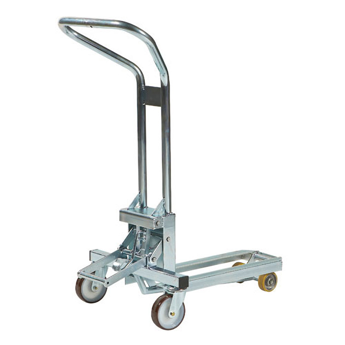 Denne transportvogn er ideel til flytning og transport af 1/4 paller. De store polyrethanhjul gør det nemt at manøvrere, beskytter underlaget og reducerer støjniveauet. Vognen er udstyret med en enkel løfte- og sænkeanordning, som betjenes med en forpedal.