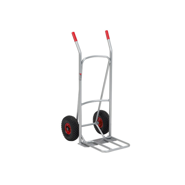 Sækkevognens samlede dimensioner er 480 mm i bredden og 1120 mm i højden. Bærepladen måler 145 mm i dybden og 390 mm i længden. Konstruktionen inkluderer rør med en diameter på 25 mm. Vognen er udstyret med luftgummihjul i størrelsen 3.00 x 4, monteret på stålfælge med rullelejer. Den har en egenvægt på 10 kg og kan bære en last på op til 200 kg.