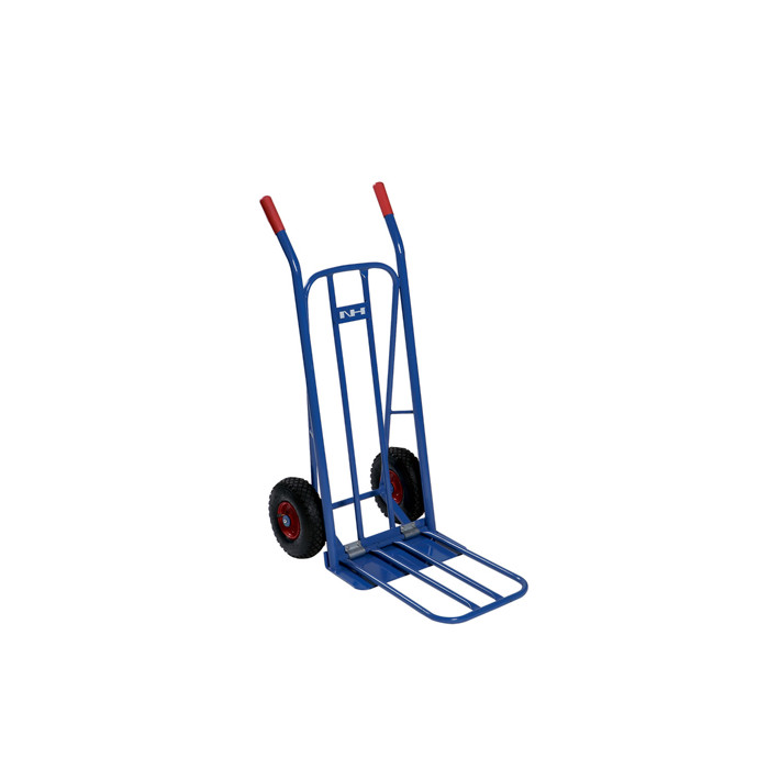 Denne sækkevogn er ikke kun robust, men også praktisk. De punkterfrie hjul betyder, at du aldrig skal bekymre dig om flade dæk, og den sammenklappelige lasteflade gør det nemt at transportere større genstande. Den er perfekt til både professionelle og private brugere, der har brug for en pålidelig transportløsning.