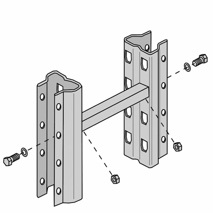 Distancestykkerne til P90 Silverline pallereol er en praktisk løsning, når du har brug for at placere to enkeltreoler overfor hinanden. Disse distancestykker sikrer, at reolerne står stabilt og korrekt i forhold til hinanden.