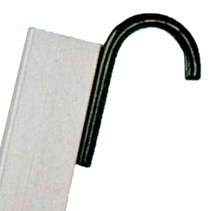 Når du bruger denne krog, kan du være sikker på, at din stige står stabilt. Den sorte plastikovertræk sikrer, at krogen ikke glider, og den runde form gør den nem at montere og bruge. Det er en enkel løsning, der kan gøre en stor forskel i din daglige brug af stiger.