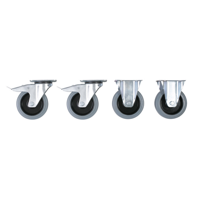 Gør din tipcontainer nemt mobil ved at tilføje hjul. Sættet inkluderer 4 solide gummihjul, hvoraf 2 er faste og 2 er svingbare med bremsefunktion. Hvert hjul kan bære op til 350 kg, hvilket giver en samlet belastningskapacitet på 1050 kg.