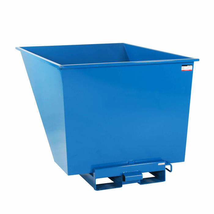 Tipcontaineren er lavet af 2 mm helsvejset stål og har en pulverlakeret overflade, hvilket gør den robust nok til at blive håndteret med en truck. Tømningsmekanismen aktiveres, når trykpladen presses mod en overflade, hvilket også øger sikkerheden ved at forhindre containeren i at glide af truckgaflerne. Når trykpladen frigøres, vender containeren tilbage til sin oprindelige position.