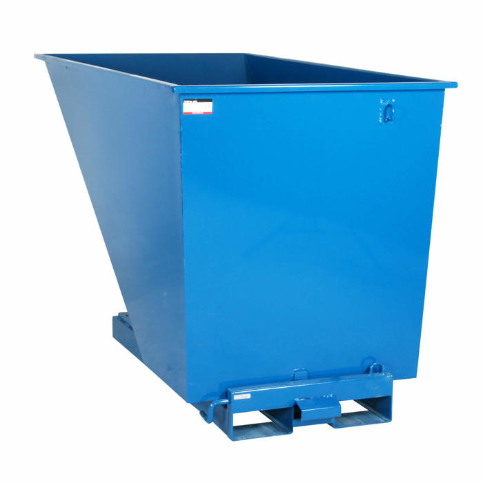 Tipcontaineren er lavet af 2 mm helsvejset stål og har en pulverlakeret overflade, hvilket gør den robust nok til hård håndtering med truck. Tømningsmekanismen aktiveres, når trykpladen presses mod en overflade, hvilket øger sikkerheden ved at forhindre containeren i at glide af truckgaflerne. Når trykpladen frigives, vender containeren tilbage til sin oprindelige position.