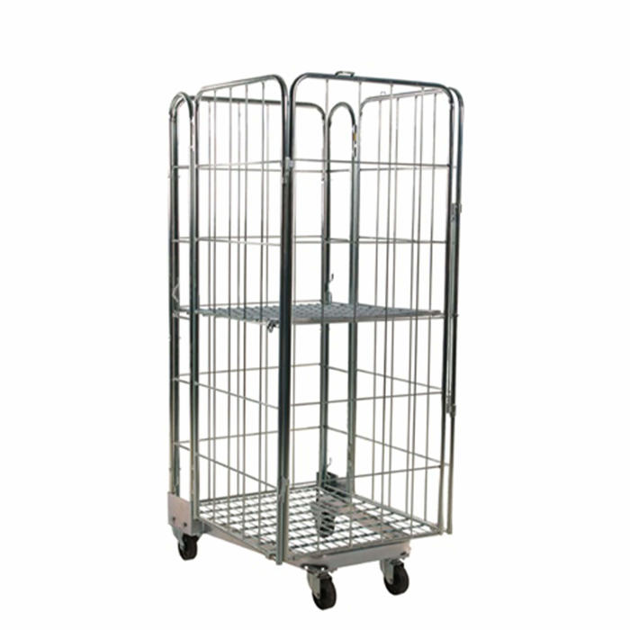 Denne stabelbare rullecontainer er designet til at være pladsbesparende, da det kan slås sammen og burene kan køres ind i hinanden, når de ikke er i brug. Det er ideelt til opbevaring og transport af forskellige genstande. Buret leveres elforzinket og inkluderer en hylde. Det er udstyret med fire vægge og fire hjul, hvoraf to er faste og to er svingbare, hvilket gør det nemt at manøvrere.