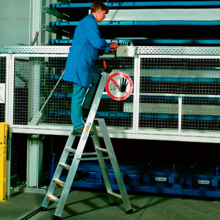Denne stige er designet med brugervenlighed og sikkerhed i tankerne. Den har kraftige lukkede vanger og stigesko, som sikrer, at stigen står fast og stabilt, mens du arbejder. Den øverste platform og aflægge-bakken i aluminium giver dig ekstra plads til værktøj og materialer, så du kan arbejde mere effektivt.