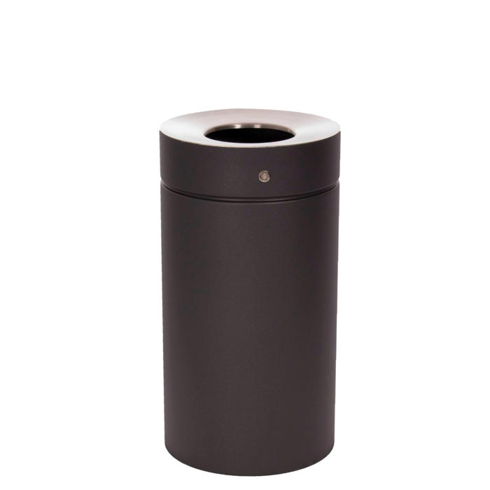 Her har du en rund udendørs skraldespand med åben top, som er ideel til virksomhedens udendørsområder. Den kan rumme hele 75 liter affald.