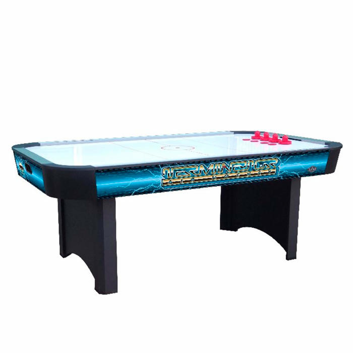 Med Terminator II får du alt, hvad du behøver for at komme i gang med det samme. Bordet leveres med 4 spillehåndtag og 5 pucke, så du kan udfordre venner og familie til en kamp med det samme.