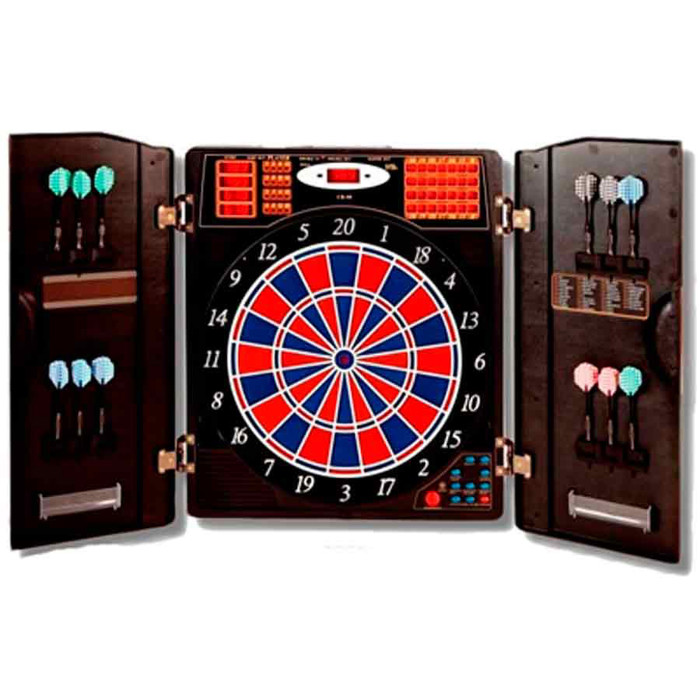 Den elektroniske dartskive kommer i et praktisk skab og tilbyder hele 38 forskellige spil med 211 varianter. Den er designet til at kunne bruges af op til 16 spillere, så der er masser af muligheder for sjov og konkurrence.
