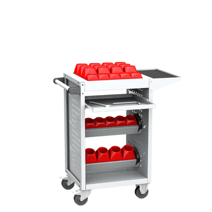 Effektiv værktøjsvogn designet til CNC værktøjer. Denne vogn kommer med holdere, der kan rumme op til 12 CNC værktøjer.