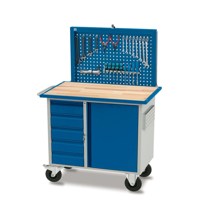 Oplev Blikas tidløse værkstedsvogn VV-3, designet til at opfylde dine behov i værkstedet. Denne model kommer med en robust bordplade i bøgeparket og inkluderer en praktisk værktøjstavle. Værktøjsvognen har dimensionerne 66x107x92h cm, hvilket gør den ideel til både små og store arbejdsområder.