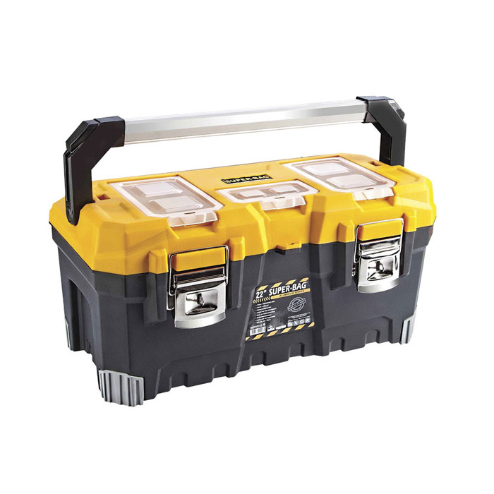 En værktøjskasse er uundværlig for både professionelle og gør-det-selv entusiaster. Denne model kommer med et stort håndtag, der gør det nemt at transportere dine værktøjer. Den er designet med metalhasper, så du kan sikre dine ting med en hængelås. Derudover er der et praktisk rum i låget til småting, så du altid har de mest nødvendige ting lige ved hånden.