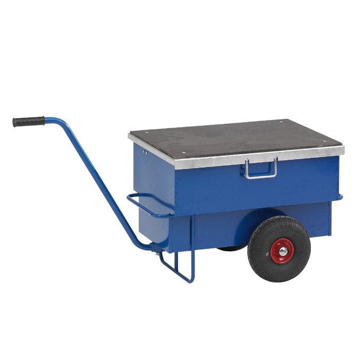 Her har du en robust værktøjsvogn, der er lavet af 1,5 mm blålakeret stålplade. Låget er fremstillet af 2 mm aluzink plade og har en 9 mm træplade på toppen. Den er udstyret med en stærk låsebolt, som sikres med en hængelås, så dine værktøjer er godt beskyttet.