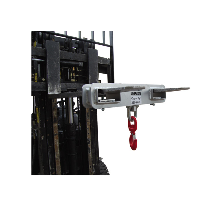 Vores gaffelkrog kan nemt justeres langs hele gaffellængden og er sikret med spændeskruer for ekstra stabilitet. Krogen er solidt fastgjort og udstyret med en sikkerhedslås. Den har en kapacitet på 2500 kg og er CE-godkendt. Gaffelmålene er 16x6 cm.